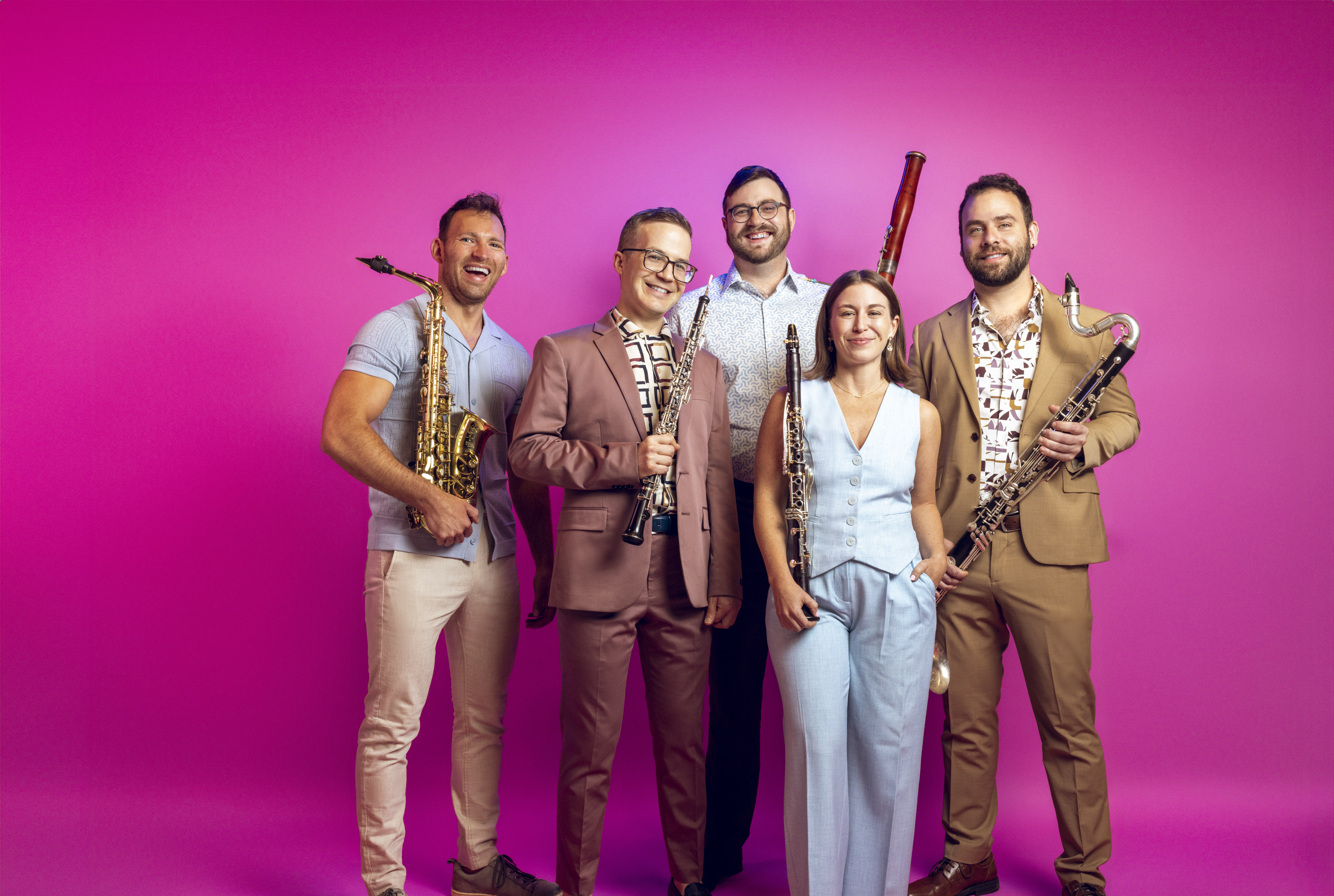 Celebrating their 16th season as “a sonically daring ensemble who specializes in performing new works with charisma and integrity” (BBC Music Magazine), the GRAMMY® Award-winning Akropolis Reed Quintet comprises five reed players and entrepreneurs unbounded by limits or categorization. Described by The Wire as a “collective voice driven by real excitement and a sense of adventure,” Akropolis has graced the Classical Billboard Charts with each of their last three albums, including #2 in April, 2024. Winner of seven national chamber music prizes including the 2014 Fischoff Gold Medal, Akropolis is known for performing “works that brilliantly exploit their unique instrumentation” (Gramophone). Composed of the same five members that brought about its founding in 2009, Akropolis delivers 120 concerts and educational events worldwide each year and has premiered and commissioned more than 150 works by living artists and composers.